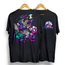Vanquished squid monster on the front left pocket with a full back print of the action!